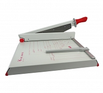Solidna, mocna, profesjonalna gilotyna biurowa z automatycznym systemem docisku papieru, dużym roboczym blatem z szablonami różnych formatów. Gilotyna posiada długie ostrze tnące wykonane z hartowanej stali oraz bezpieczny uchwyt. Długie ostrze pozwala przyciąć format A3 po krótszym boku. Posiada duży blat roboczy.