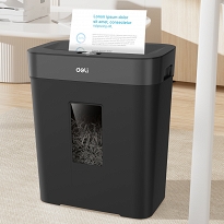 Niszczarka DELI to kompaktowa, elegancka i smukła niszczarka do małego biura do pracy dla jednej lub kilku osób jako urządzenie przybiurkowe, dostępna w stopniu tajności: DIN 66399: P-4, zapewniając jednocześnie pewne i niezawodne niszczenie dokumentów, zszywek i spinaczy. Zgodna z RODO.